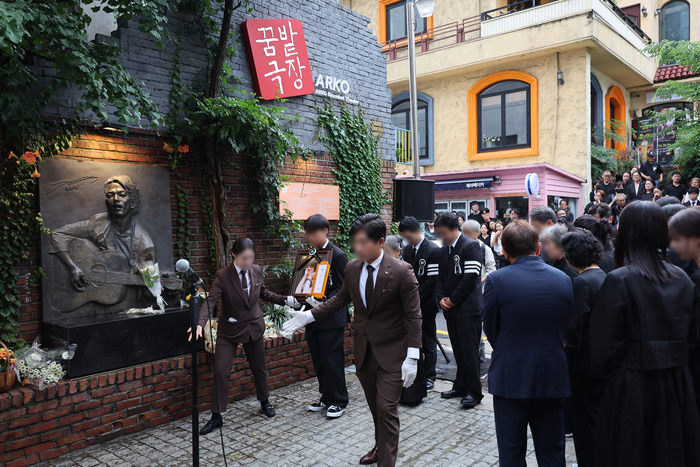 고인이 33년 간 일궈온 학전에서 마지막 인사를 한 유가족들과 설경구, 장현성, 박학기 등 많은 배우들은 고인의 영정이 학전 앞으로 들어서자 모두 눈물을 흘렸다.