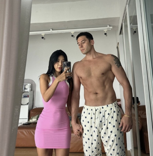 23일 제이제이는 개인 채널에 “신혼이 원래 이렇게 게으른 건가요?”라는 문구와 함께 사진을 게재했다. 사진 속 제이제이는 줄리엔강과 거울 앞에서 사진을 찍고 있는 모습이다.