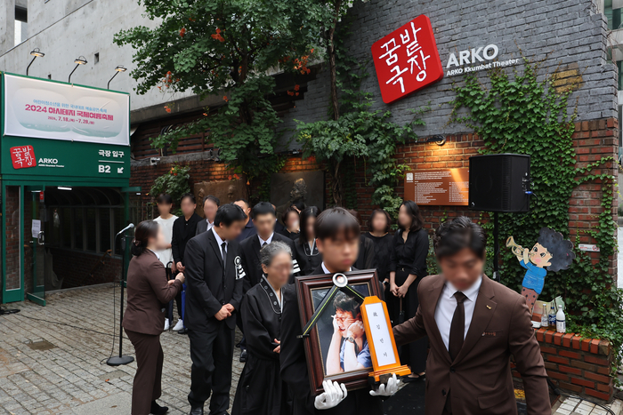 [스포츠서울 | 정하은 기자] 대학로 소극장 학전을 이끌어온 고(故) 김민기를 마지막으로 배웅하면서 후배 배우들이 눈물을 보였다.