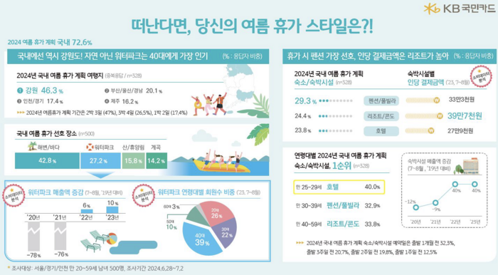 [스포츠서울 | 최규리 기자] KB국민카드가 본격적인 여름 휴가철을 앞두고, 24년 여름 휴가 계획 설문조사와 휴가관련 신용카드 및 체크카드 이용 데이터 분석을 통해 여름 휴가 소비 트렌드를 살펴봤다.