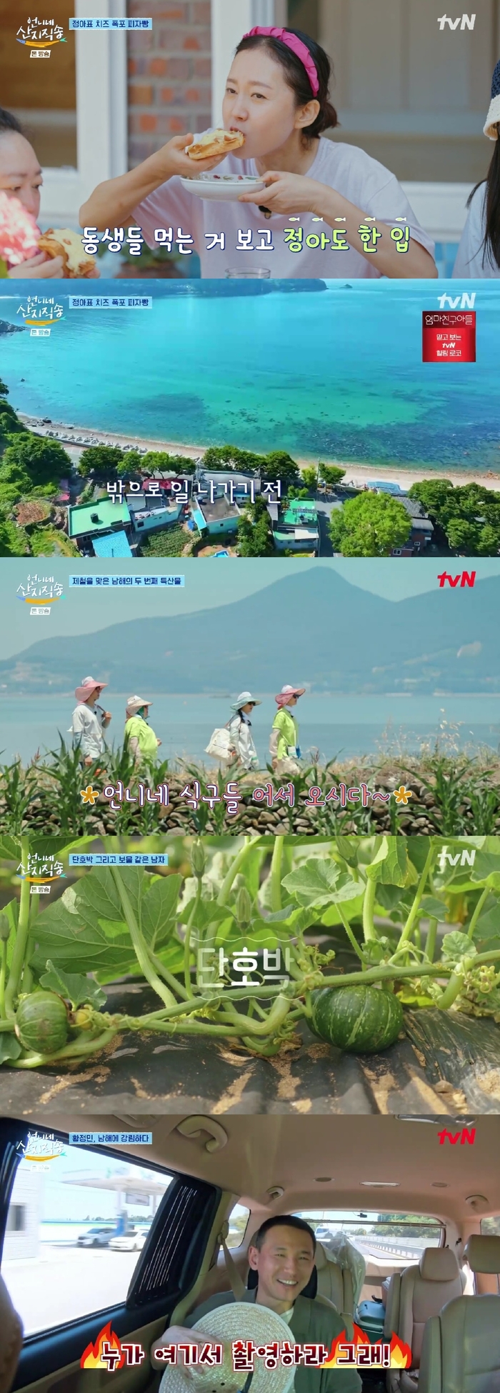 25일 방송된 tvN 어촌 리얼리티 ‘언니네 산지직송’에서 어촌 남매 염정아, 박준면, 안은진, 덱스의 남해 둘째 날이 방송됐다.