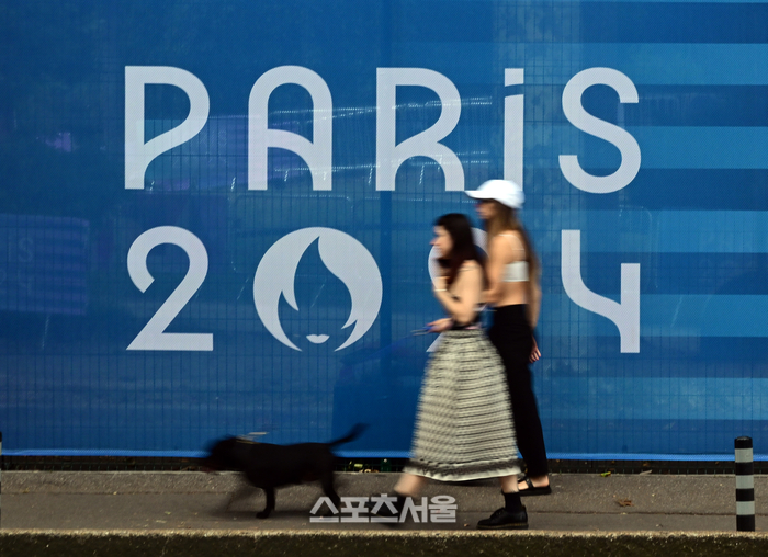 파리올림픽을 하루 앞둔 25일(현지 시간) 오후 개회식이 펼쳐질 파리 트로카데로 광장의 가림막 앞으로 시민들이 지나가고 있다. 2024. 7. 26.