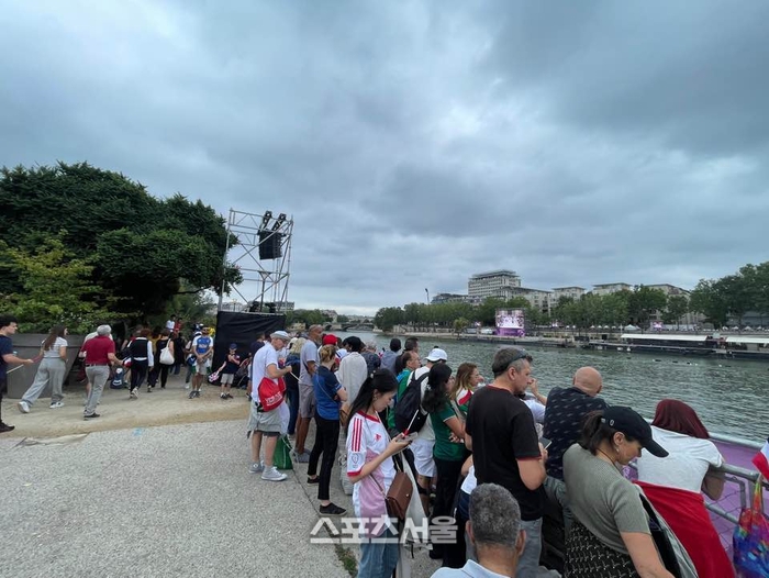 여러 불편에도 개막식이 열리는 센강 주변은 인파로 인산인해를 이루고 있다. 통제 인력에 의해 외부에 대기하던 무리는 오후 4시30분부터 검색대를 넘어 행사를 보기 위해 센강 주변으로 몰려들고 있다. 각 나라 국기를 손에 들거나 페이스 페인팅을 한 사람들이 모여 개막식을 기다리고 있다. 행사를 더 자세히 보기 위해 망원경을 들고 등장한 사람도 보였다.