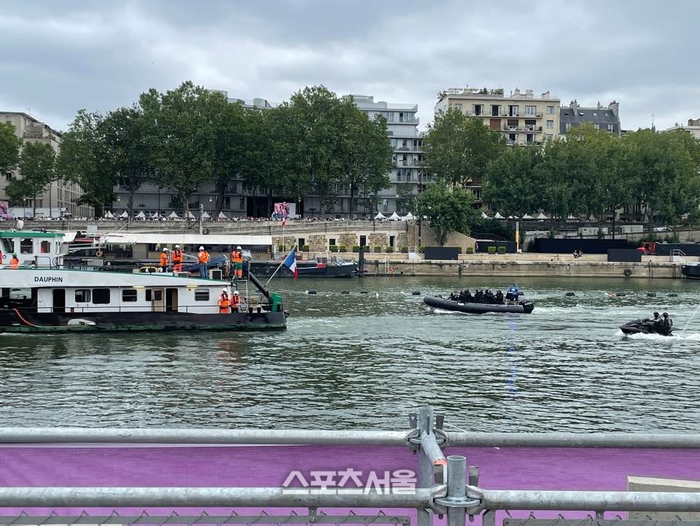 개막식이 진행되는 센강 주변도 다르지 않았다. 행사 시작 3시간 전까지 해양 경찰이 꼼꼼하게 센강 내부를 수색하며 만에 하나 발생할 불상사에 대비했다.