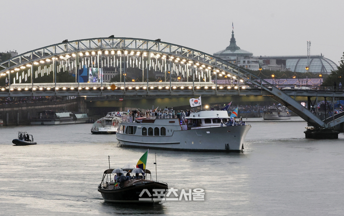 스포츠 | 스포츠일반 [포토]센강 따라 입장하는 대한민국 선수단 입력2024-07-27 06:46:13 북마크 페이스북 트위터 SNS 더보기 가글자크기설정 인쇄 SNS 더보기 닫기 네이버밴드 네이버블로그 URL복사 글자크기 설정 메뉴 닫기 글자크기 설정 시 다른 기사의 본문도동일하게 적용됩니다. 가 가 가 가 가 대한민국 올림픽 선수단이 26일(현지시간) 프랑스 파리 센강 일대에서 열린 2024 파리올림픽 개회식에 참석하기 위해 배를 타고 행사장으로 이동하고 있다. 2024. 7. 26.파리 | 사진공동취재단 기사추천 0