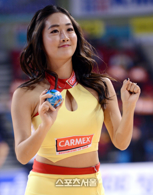 인천 전자랜드 치어리더가 열띤 응원전을 벌이고 있다.