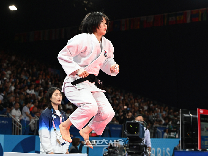허미미는 29일 프랑스 파리 아레나 샹드마르스에서 열린 57㎏급 8강전에서 몽골 르하그바토고와 맞붙었다. 상대 전적 0승 3패로 열세. 메달 확보에 앞서 최대 고비로 꼽힌 상대였다.