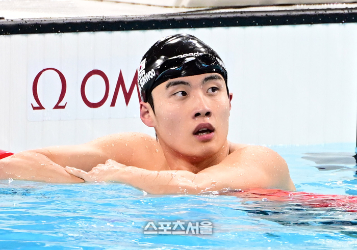 수영 대표팀의 황선우가 30일(한국 시간) 프랑스 파리 라 데팡스 아레나에서 열린 2024 파리올림픽 수영 자유형 100m 예선에서 역영을 펼친 뒤 기록을 확인하고 있다. 황선우는 전체 16위로 준결선에 진출했다. 2024. 7. 30.