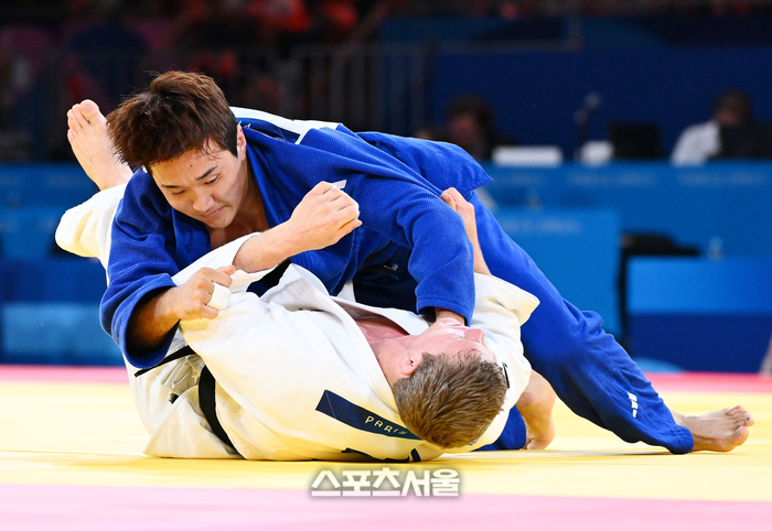 유도 국가대표 이준환이 31일(한국 시간) 프랑스 파리 샹드마르스 아레나에서 열린 2024 파리올림픽 남자 유도 -81㎏급 동메달 결정전에서 루마니아의 마티아스 카세를 상대하고 있다. 이준환은 동메달을 획득했다. 2024. 7. 31.