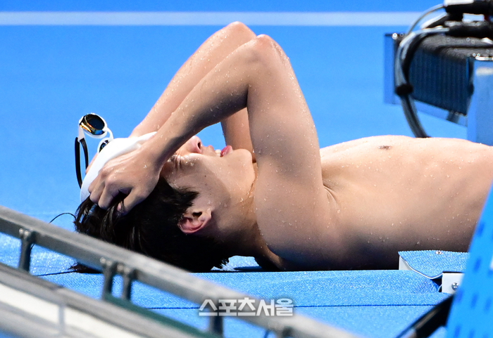 수영 대표팀의 김민섭이 31일(한국 시간) 프랑스 파리 라 데팡스 아레나에서 열린 2024 파리올림픽 수영 접영 200m 준결선에서 역영을 펼친 뒤 아쉬워하고 있다. 김민섭은 전체 13위로 결선 진출에 실패했다. 2024. 7. 31.