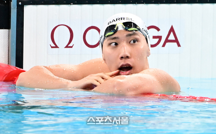 수영 대표팀의 조성재가 31일(한국 시간) 프랑스 파리 라 데팡스 아레나에서 열린 2024 파리올림픽 수영 평영 200m 준결선에서 역영을 펼친 뒤 기록을 확인하고 있다. 조성재는 전체 12위로 결선 진출에 실패했다. 2024. 7. 31.