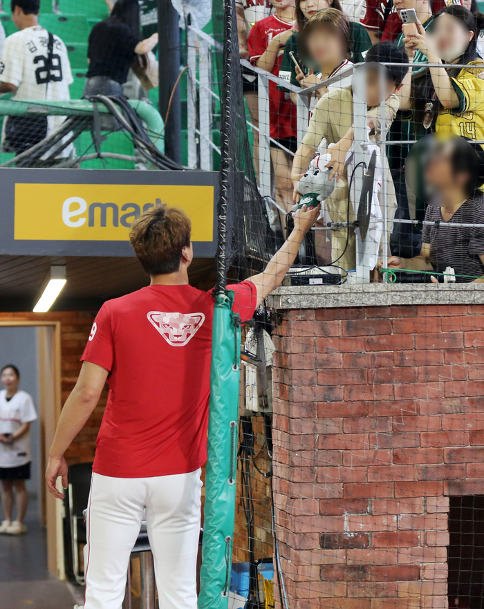 이날은 평소와 다른 점도 하나 있었다. 팬을 위한 마스코트 인형을 따로 준비했다. SSG는 타자가 홈런을 기록하면 더그아웃 세리머니 후 곧바로 관람석으로 다가가 팬에게 ‘홈런 기념 인형’을 던져준다. 기쁨을 팬과 함께 나눈다.