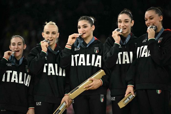 2024 파리 올림픽 기계체조 여자 단체전에 출전한 엘리사 이오리오(이탈리아)는 31일(한국시간) 단체전 결선에서 미국에 이어 은메달을 차지했다.