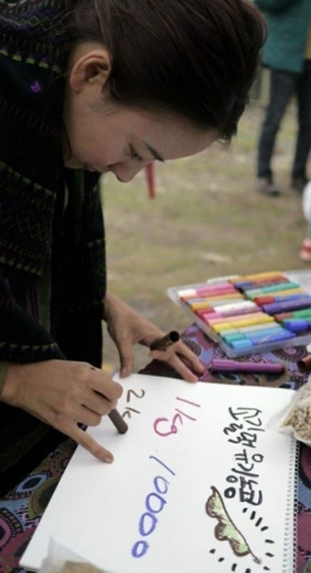 이효리는 지난 8일 자신의 블로그에 "반짝반짝 착한 가게"라며 제주도 이웃 주민들에게 자신이 직접 재배한 콩을 판매한 사진을 게재했다. 또, 사진에는 이효리가 '소길댁 유기농 콩'이라고 적고 있는 모습이 담겼다.