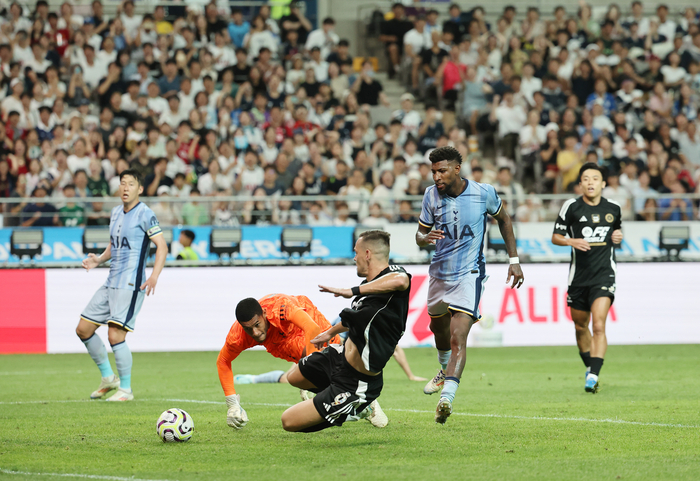 팀K리그는 후반 시작과 함께 베스트11을 모두 바꿨다. 외국인 선수들이 모두 투입됐다. 정재희와 황문기만 국내 선수였다. 토트넘도 올리버 스킵, 제임스 메디슨, 브랜던 오스턴이 투입됐다. 후반 6분 팀K리그가 만회골을 넣었다.