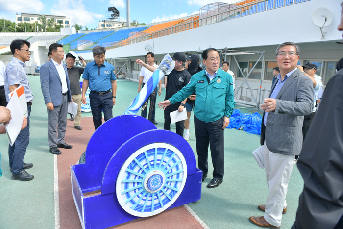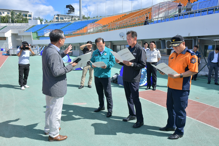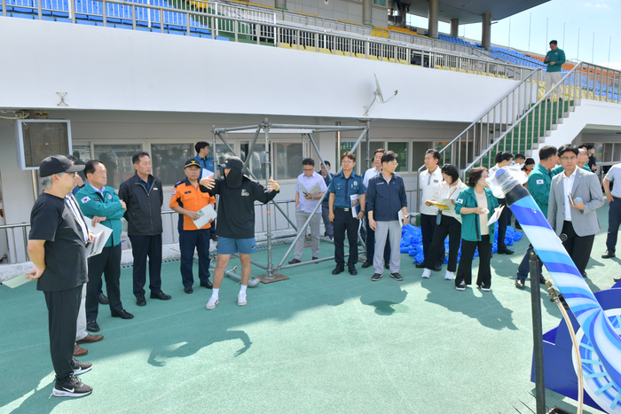 [스포츠서울ㅣ김기원기자]이병선 속초시장은 8월 1일 오전 10시, 속초종합운동장을 방문해 속초경찰서, 속초소방서 및 속초시시설관리공단 등 유관기관과 함께 싸이흠뻑쇼 대비 합동 안전점검을 진행했다.