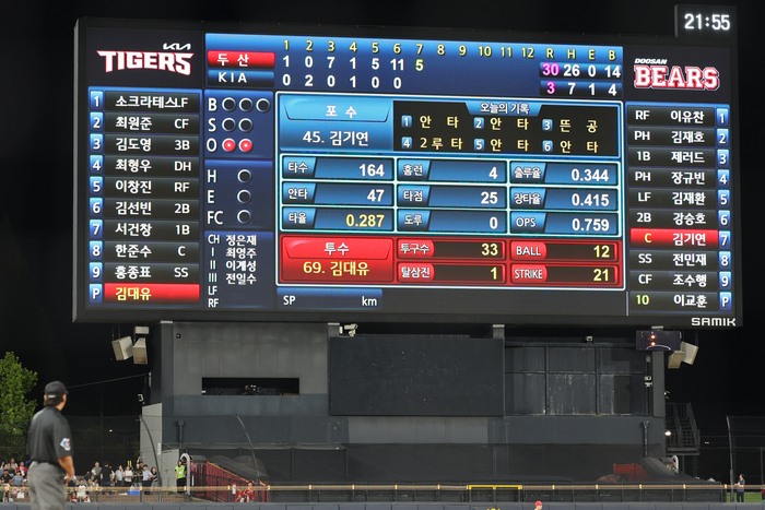 [스포츠서울 | 윤세호 기자] 무섭게 폭발한 7월의 마지막 날이었다. 다섯 구장에서 무려 109득점이 쏟아지며 신기록을 세웠다. 더불어 두산이 KIA를 상대로 30점을 퍼부으면서 한 팀 한 경기 최고 득점도 달성했다. 약 150년 역사의 메이저리그(ML)에서도 9번 밖에 없는 30득점 경기가 나온 광주였다.