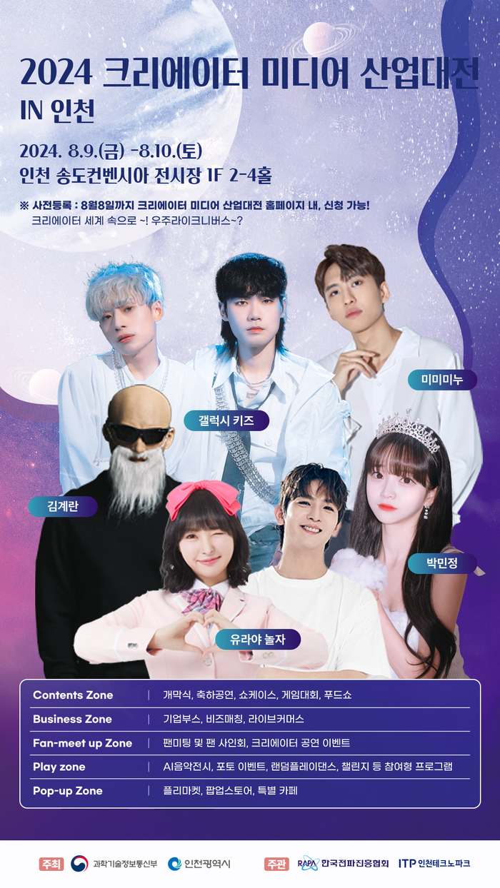 [스포츠서울 | 표권향 기자] 과학기술정보통신부와 인천광역시가 공동 주최하는 ‘2024 크리에이터 미디어 산업대전 in 인천’(이하 크미대)이 미디어 산업대전으로 확대했다. 이번 행사는 오는 9~10일 인천 송도컨벤시아에서 열린다.
