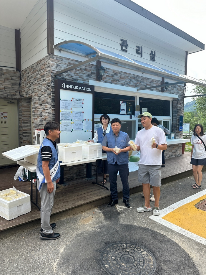 [스포츠서울ㅣ김기원기자]평창군시설관리공단(이사장 최순철)은 8월 2일 성수기를 맞이하여 계방산오토캠핑장, 평창국민여가캠핑장, 평창자연휴양림 이용객들에게 평창 농산물을 제공하였다. 지역에서 생산되는 우수한 농산물을 홍보하면서 공단 시설을 찾은 고객에게 서비스를 제공하여 만족도를 올리는 ESG 경영을 실천하고자 2021년 출범 이후 4년 연속 추진하고 있다.