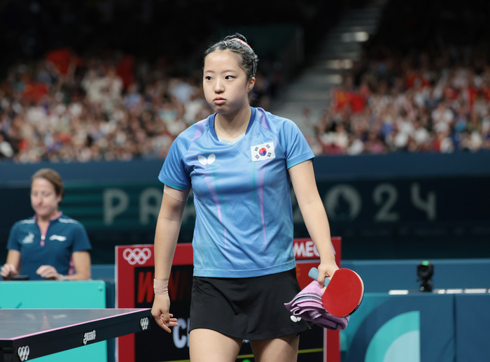 신유빈(8위·대한항공)은 2일(한국시간) 프랑스 파리 사우스 파리 아레나에서 열린 2024 파리 올림픽 탁구 여자 단식 4강전에서 ‘강적’ 천멍(중국·4위)에게 세트 스코어 0-4(7-11 6-11 7-11 7-11)로 완패했다.