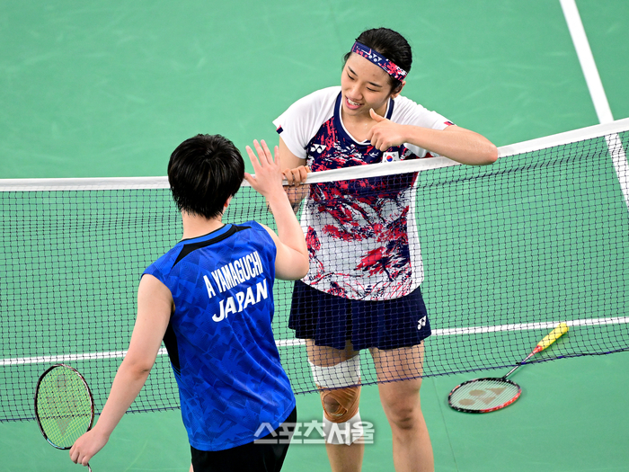 승리를 거둔 안세영이 야마구치 아카네와 인사를 나누고 있다. 2024.08.03 / dreamer@osen.co.kr