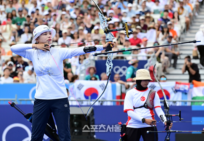 결승에서 임시현과 남수현이 맞붙는다. 한국은 금메달, 은메달을 모두 확보했다. 동메달결정전으로 향한 전훈영까지 승리할 경우 금은동을 싹쓸이하게 된다. 2000 시드니올림픽 이후 24년 만의 개인전 금은동 획득까지 딱 한 걸음 남았다. weo@sportsseoul.com
