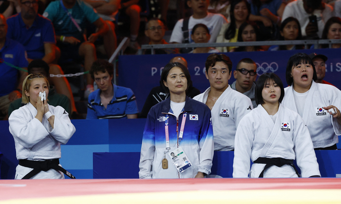 허미미(경북체육회)~안바울(남양주시청)~김지수(경북체육회)~한주엽(하이원)~이준환(용인대)~김하윤(안산시청)~김민종(양평군청)으로 구성된 한국 유도 대표팀이 3일(현지시간) 프랑스 파리 샹드마르스 아레나에서 열린 파리 올림픽 유도 혼성 단체전에서 독일을 4-3으로 꺾었다.