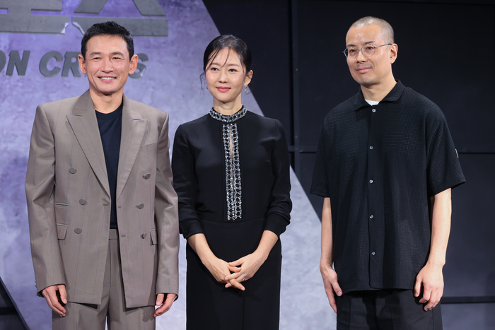‘크로스’는 아내에게 과거를 숨긴 채 베테랑 주부로 살아가는 전직 요원 강무(황정민 분)와 남편의 비밀을 오해한 강력범죄수사대 에이스 미선(염정아 분)이 거대한 사건에 함께 휘말리면서 벌어지는 이야기를 그린 오락 액션 영화다. 오는 9일 공개된다. intellybeast@sportsseoul.com
