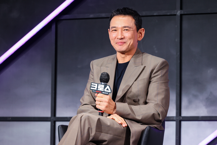 황정민은 5일 오전 11시 서울 중구 앰버서더 서울 풀만 호텔에서 열린 ‘크로스’ 제작보고회에서 “그간 남자 배우들과 주로 연기해 같이 티키타카를 할 상대역이 누가 될지 궁금했다. 염정아라서 정말 행복했다”고 말했다.