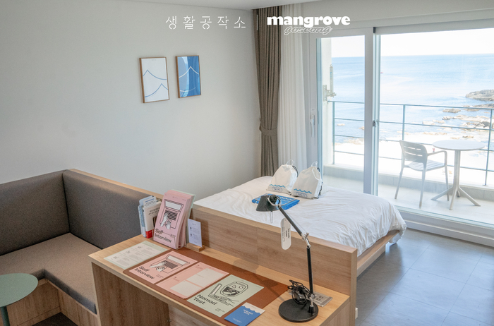 이번 ‘생공적 쉼 in 고성, 몰입과 쉼’에서는 맹그로브 고성 내의 숙박 공간 중 ‘스테이 더블 스위트룸’을 8월 한달 동안 테마룸으로 활용한다.