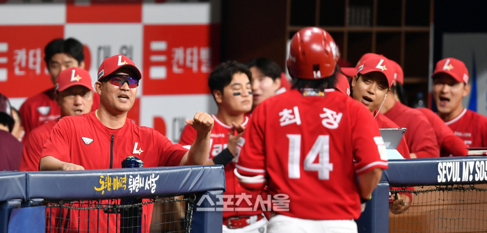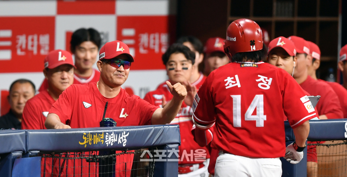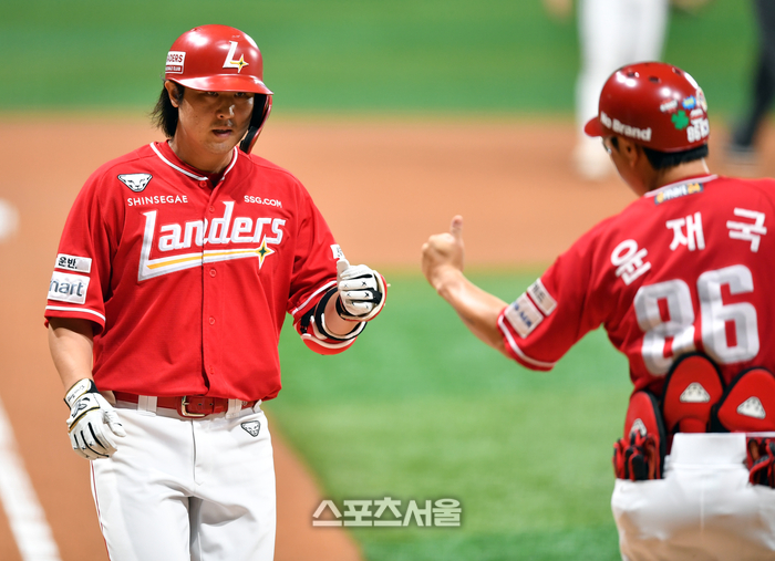 이숭용감독이 엄지를 치켜세우며 최정을 반기며 주중 첫 경기를 상큼하게 시작한 SSG. 최정의 홈런을 [한번에쓱)에 담아봤다.