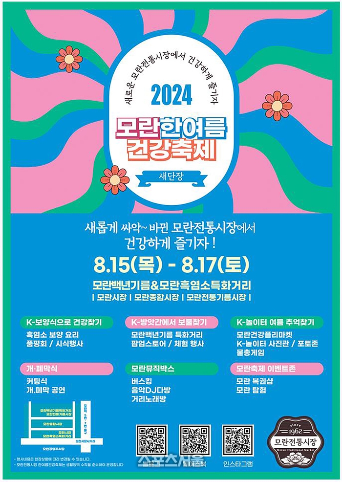 〔스포츠서울│성남=좌승훈기자〕경기 성남시는 오는 15일부터 17일까지 3일간 모란전통시장 일대에서 ‘모란 한여름 건강축제’를 진행한다.