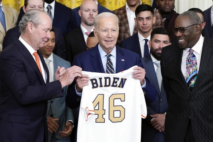 바이든과 만나게 되는 텍사스 선수들은 전통에 따라 유니폼을 선물한다. 이 유니폼에는 몇 대 대통령인지 등번호와 성이 새겨진다.