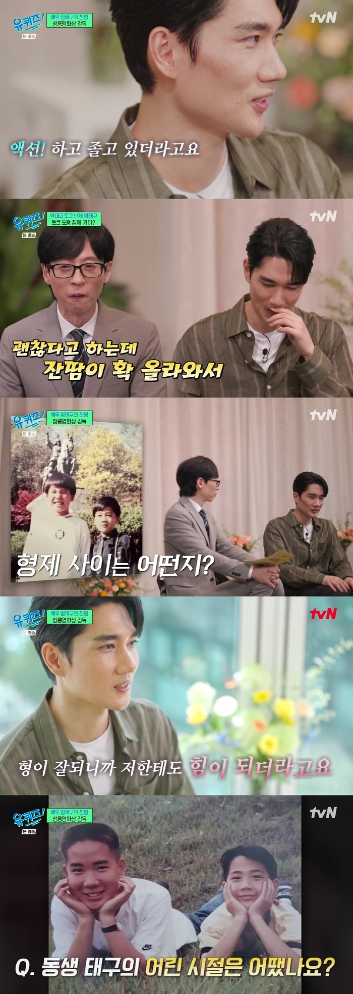 엄태구의 극내향형 일화도 공개됐다. 어린 시절 웅변학원에서 울었다는 에피소드에 대해 엄태구는 “무대에 올라가서 ‘선서합니다’까지 하고 울면서 내려갔다”라고 말했다.