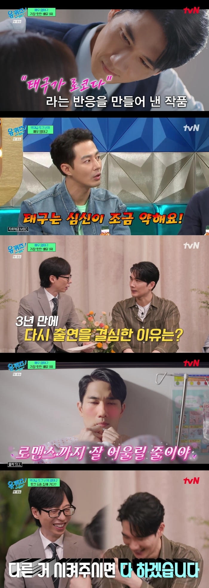 엄태구는 “사실 ‘유퀴즈’ 너무 나오고 싶었는데 겁이 나서 고민했는데 엄마가 소원이라고 하셔서 나가겠다고 했다”라고 말했다.