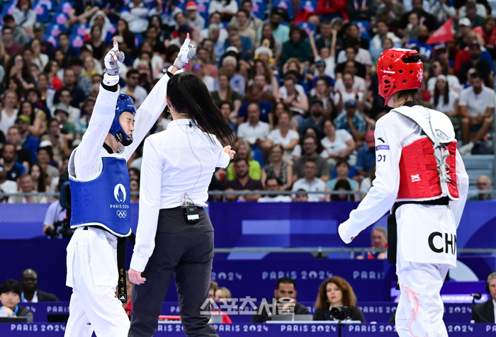 김유진은 8일(한국시간) 프랑스 파리의 그랑팔레에서 열린 2024 파리 올림픽 태권도 여자 57㎏급 준결승에서 중국의 뤄쭝스를 2-1(7-0, 1-7, 10-3)로 제압했다.