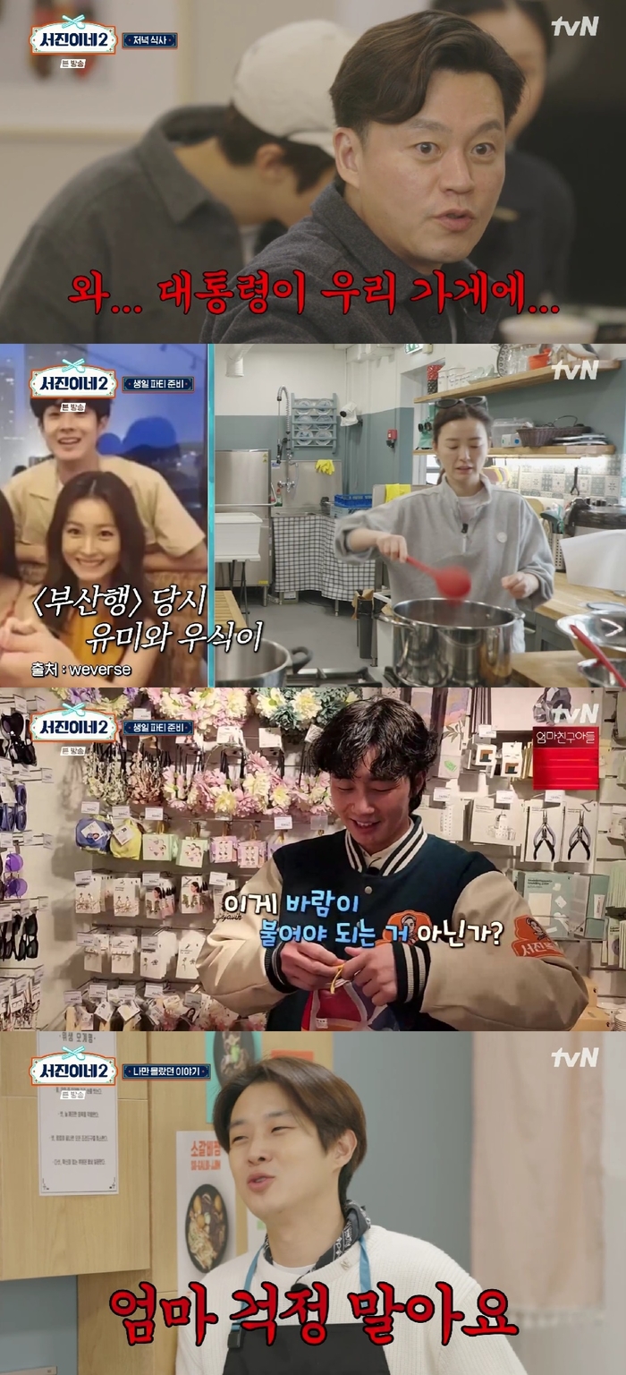 9일 방송된 tvN ‘서진이네2’에서 일요일 저녁까지 많은 손님을 치른 멤버들은 다음날 신메뉴와 장사 준비를 하느라 밤 11시20분이 넘어서야 집으로 향했다. 최우식은 내심 생일파티를 기대했지만, 멤버들은 집에 오자마자 뻗었다.