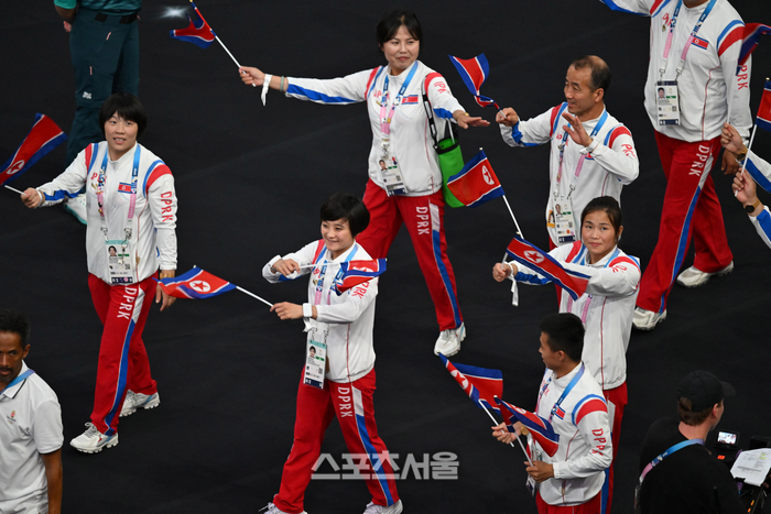 스포츠 | 스포츠일반 [포토]북한 선수단의 입장 입력2024-08-12 05:31:33 북마크 페이스북 트위터 SNS 더보기 가글자크기설정 인쇄 SNS 더보기 닫기 네이버밴드 네이버블로그 URL복사 글자크기 설정 메뉴 닫기 글자크기 설정 시 다른 기사의 본문도동일하게 적용됩니다. 가 가 가 가 가 12일(한국 시간) 프랑스 생드니 스타드 드 프랑스에서 열린 2024 파리 올림픽 폐회식에서 북한 선수들이 입장하고 있다. 2024. 8. 12.파리 | 박진업 기자 upandup@sportsseoul.com 기사추천 0