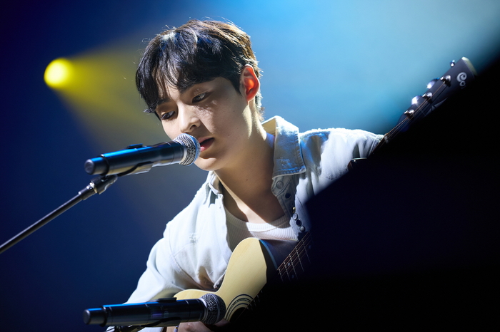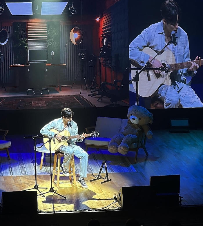 송건희는 도영의 ‘새봄의 노래’와 최유리의 ‘바다’를 기타 연주로 선보이며 팬들을 즐겁게 했다. 특히 ‘첫 만남은 계획대로 되지 않아’ 커버 무대에서는 청량한 아이돌 댄스까지 선보이며 팬미팅 현장을 뜨겁게 달궜다.