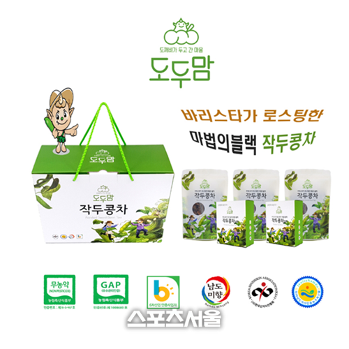 ㈜도두맘에서 자랑하는 바리스타가 로스팅한 블랙 작두콩차는 80g에 1만원이며, 작두콩차 선물세트(작두콩차 80g 3팩+티백 2박스)는 3만8,000원에 구입할 수 있다.