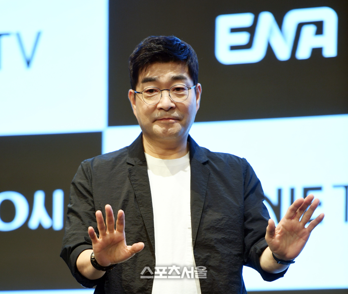 12일 오후 10시 첫 방송되는 ENA·지니 TV 오리지널 드라마 ‘유어 아너’는 자식을 위해 괴물이 되기로 한 두 아버지의 부성 본능 대치극이다. 이날 첫 방송을 앞두고 서울 구로구 신도림 디큐브시티 더 세인트 그랜드볼룸에서 제작발표회가 열렸다. 유종선 PD와 배우 손현주, 김명민, 김도훈, 정은채 등이 참석했다. 허남준은 코로나19 확진으로 이날 불참했다.