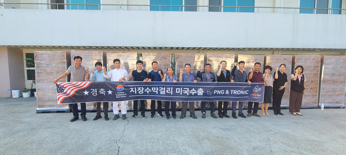 지난 8월 14일 ㈜낙천이 생산하는 지장수 막걸리 560박스(금액기준 1,019만원 상당)가 미국 수출을 위한 선적작업을 위해 부산으로 출발했다.
