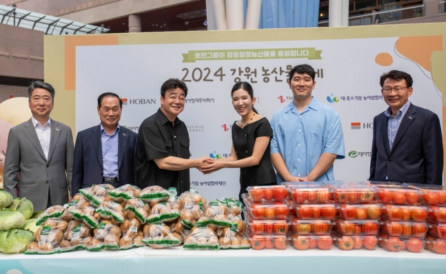 [스포츠서울 | 최규리 기자] 호반그룹은 14일 경기 수원 아브뉴프랑 광교점에서 더본코리아, 대아청과와 함께 ‘2024 강원 농산물 축제’를 개최했다고 밝혔다.