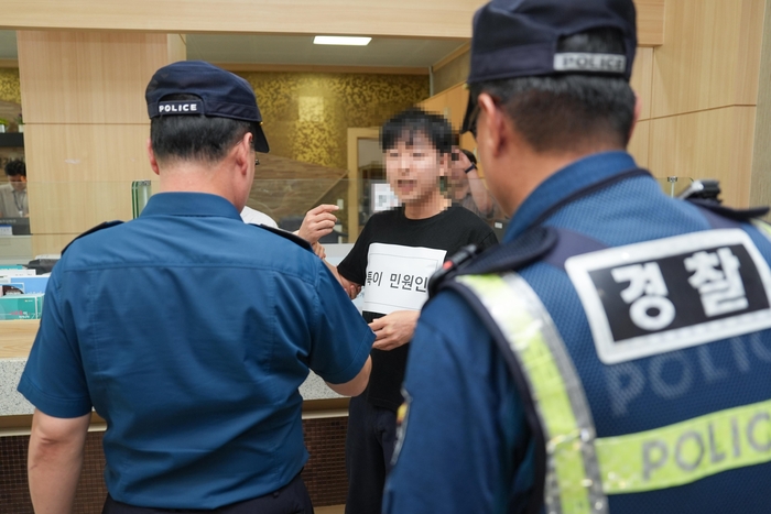 훈련은 민원인이 폭언하는 가상 상황을 설정하고, △상급자 대응 및 진정 유도 △휴대용 보호장비를 통한 녹음·녹화 △비상벨 호출 및 타 민원인 등 대피 유도 △안전 요원 개입 △경찰 인계 순으로 진행했다.