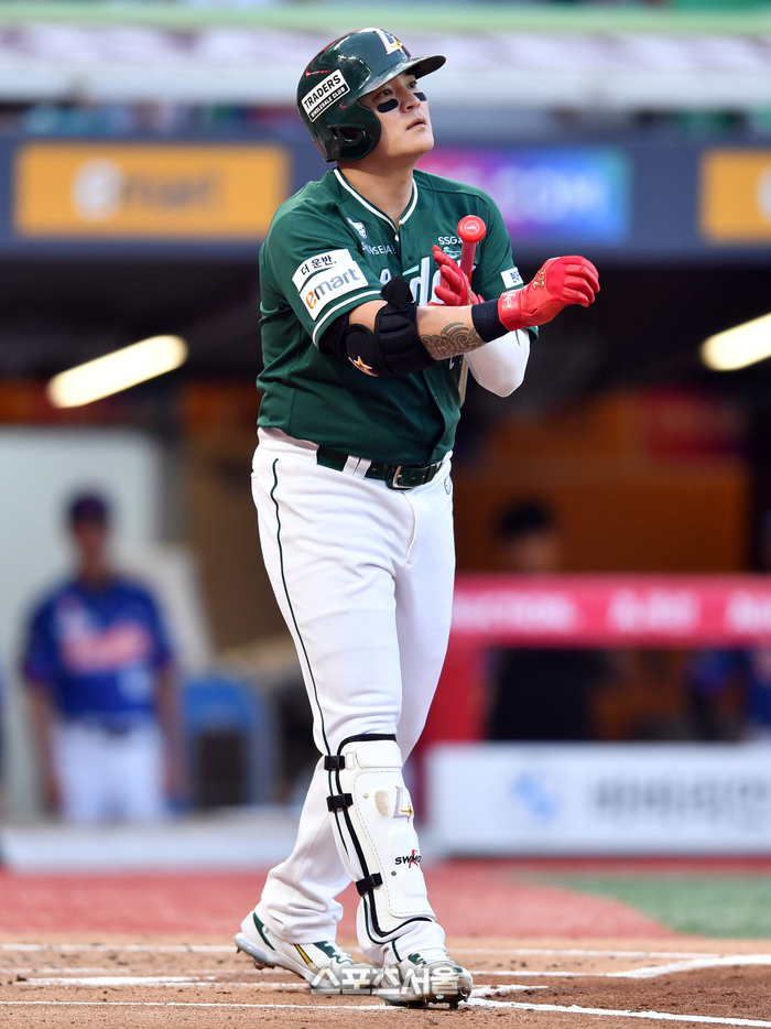 SSG 2번타자 추신수가 16일 인천SSG랜더스필드에서 열린 2024 프로야구 SSG랜더스와 한화이글스의 경기 1회말 1사 후 볼넷으로 출루하고 있다. 2024.08.14.