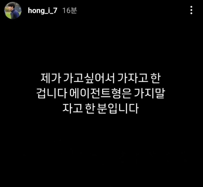 홍현석은 17일(한국시간) 자신의 소셜 미디어를 통해 “제가 가고 싶어서 가자고 한 겁니다. 에이전트형은 가지 말자고 한 분입니다”라고 적었다.