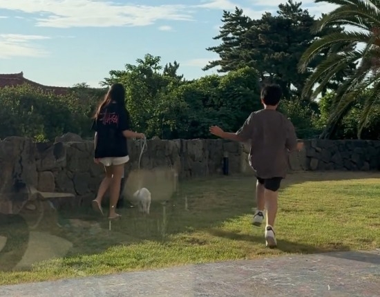 공개된 사진 속 박지윤은 아이들과 제주도 자택에서 일상을 즐기고 있는 모습이다.