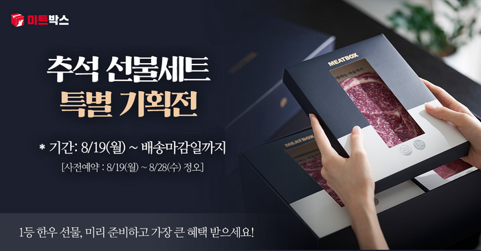[스포츠서울 | 최규리 기자] 축산물 직거래 플랫폼 미트박스가 민족 대명절 한가위를 맞아 ‘추석 선물 특별 기획전을 진행한다고 20일 밝혔다.
