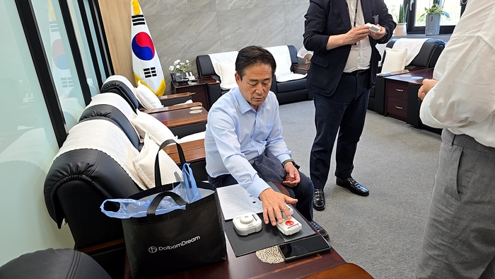 이날 신영재 군수는 직접 돌봄 조끼를 착용하고 어르신들이 착용 시 불편 사항은 없는지 점검하며, 이용에 어려움이 없도록 철저한 준비를 당부했다.