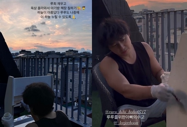 아야네는 20일 개인 채널에 “루희 재우고 옥상 올라와서 아기방 책장 칠하기”라는 글과 함께 사진을 게재했다. 사진 속 이지훈은 딸을 위해 열심히 책장을 칠하는 모습이다. 무더운 날씨에도 딸을 위해 책장을 칠하는 초보 아빠의 모습이 흐뭇하게 만들었다.
